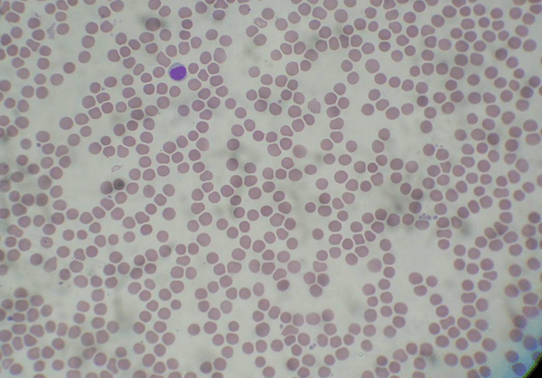 淡紅色,無(wú)核的圓形細(xì)胞,因紅細(xì)胞為雙凹形,故邊緣部分染色較深,中心較淺,直徑7-8微米。